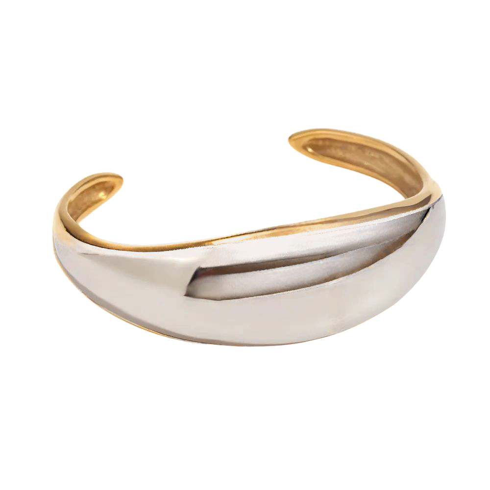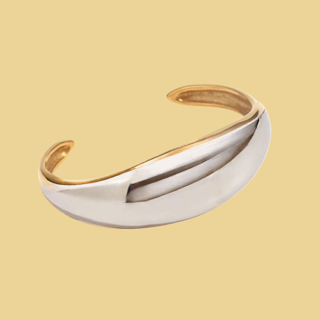 La Pulsera Verónica Bicolor celebra el equilibrio entre fuerza y suavidad, lo clásico y lo moderno. Con un diseño limpio y contrastante en dorados y plateados, esta pieza se convierte en un símbolo de balance personal y estilo sin esfuerzo. Hecha en acero inoxidable 304 con baño de oro de 18K, tiene una estructura sólida y elegante, con un peso de 33g que le da presencia sin perder comodidad. Ideal para llevar sola o en capas, esta pulsera expresa tu luz en todas sus formas.